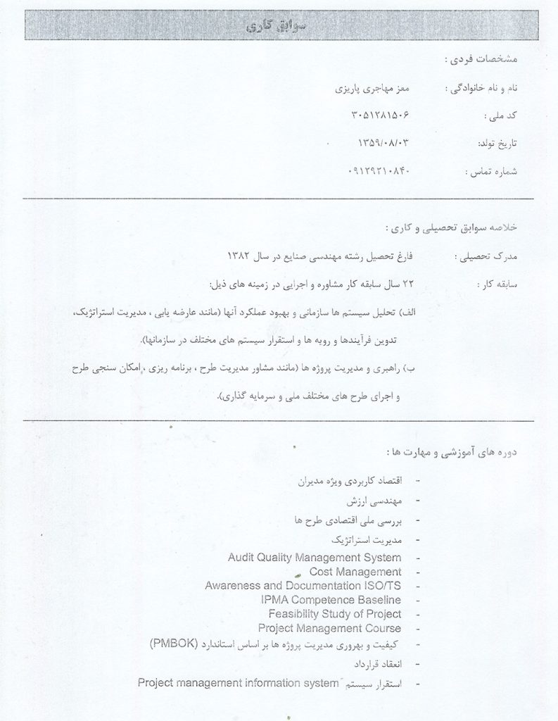 ۱۲- آقای مهندس معز مهاجری پاریزی
