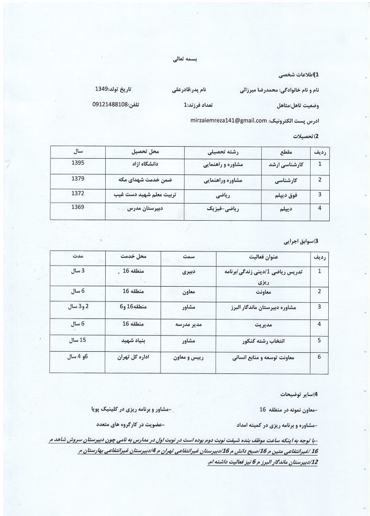 ۱۱- آقای محمد رضا میرزایی تیر آبادی